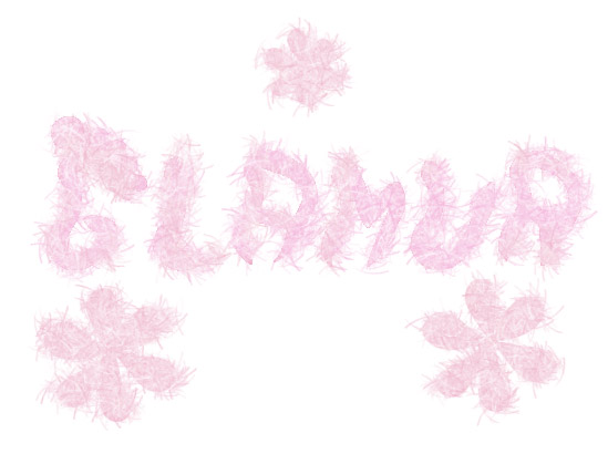 | 1) Создаём новый документ, печатаем ваш текст: 2) Растеризуйте слой с текстом, затем Ctrl+клик по слою. Создаём новый слой и убирая глазок со слоя с текстом делаем его невидимым. 3) Берём инструмент кисти и выбираем форму как показано ниже на рисунке: 4) Изменяем диаметр кисти на 30 рх: 5) F5 и производим настройки кисти как показано на рисунке: 6) Выберите любой цвет. Закрасьте выделение кистью примерно как показано на рисунке: 7) Снимите выделение Ctrl+D. Для обработки краёв используйте ту же кисточку только меньшего диаметра (! Что бы получилось окуратно на время обработки увеличьте масштаб изображения Ctrl++): 8) Для получения окончательного результата, сделайте опять видимым слой с текстом, смените цвет текста на розовый.Сделайте активным слой с перьями затем нажмите Ctrl+U и произведите такие настройки: Текст готов: источник:тут